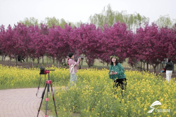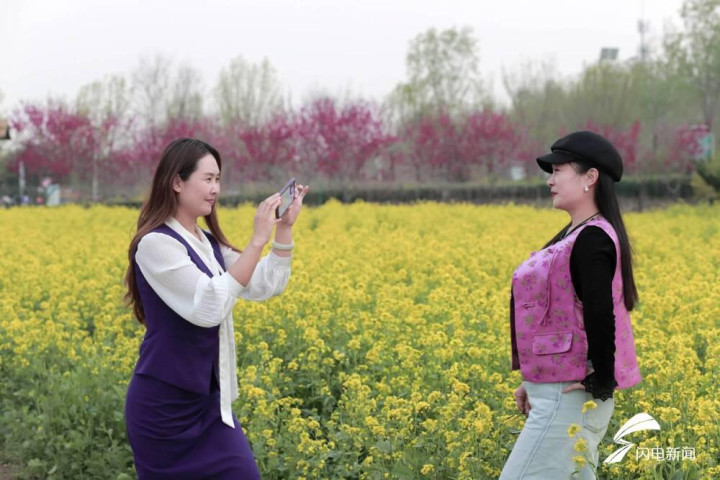 游客们纷纷拿出手机,记录下这美好的春日,摆出各种创意姿势,留下难忘的“打卡”记忆。